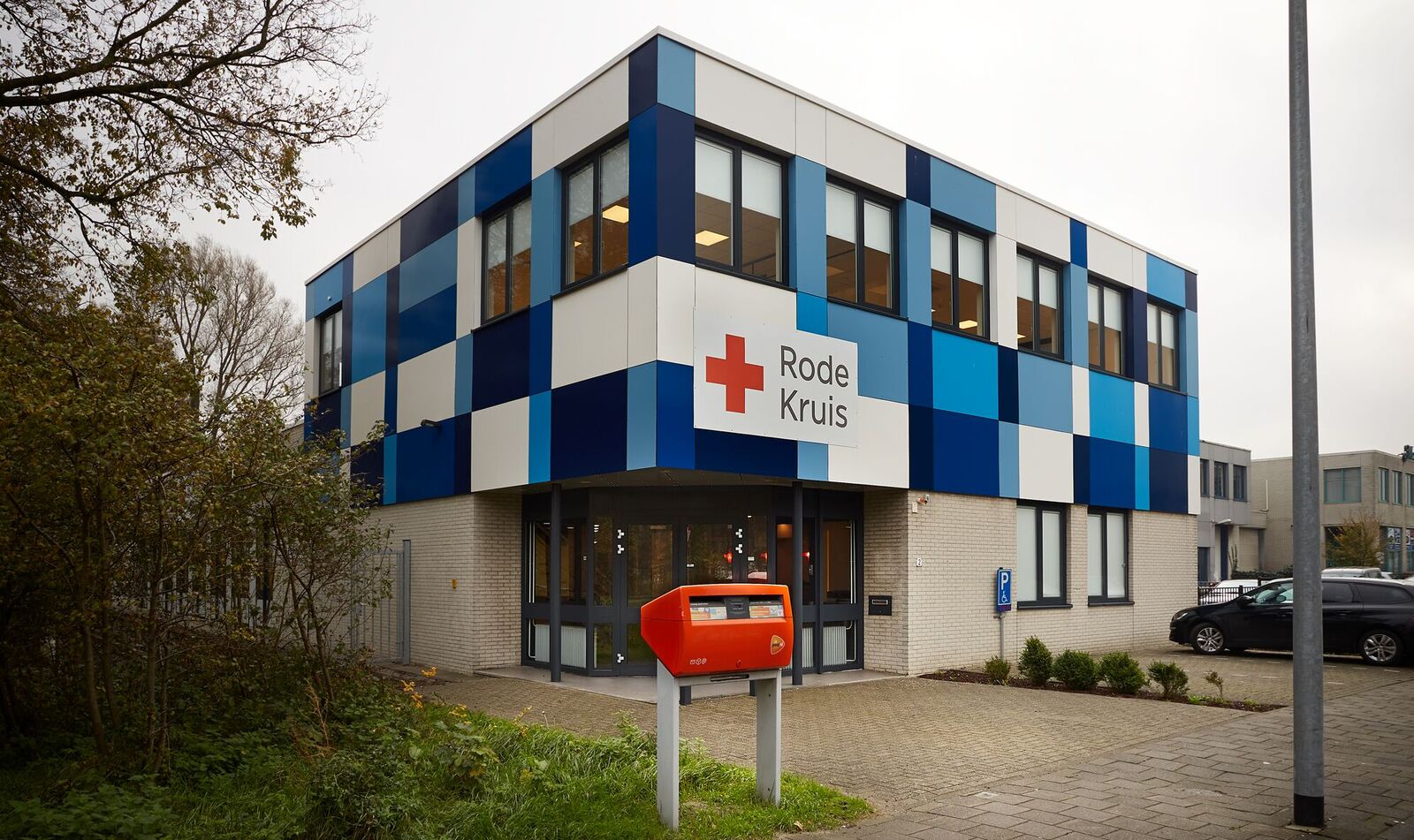 Van een anonieme bedrijfsruimte tot een landmark in de buurt. Het Rode Kruis is op diverse gebieden actief, het gebouw moest ruimte bieden voor al deze disciplines. Ontmoeten, trainen, begeleiden, opvangen en verdelen. We hebben een grote centrale ontvangstruimte gecreëerd waar grote groepen zich kunnen verzamelen of kunnen wachten tot een van de trainingen begint. De lokalen liggen rond het centrale plein en zijn ingericht met flexibel meubilair zodat ook de ruimte zelf voor verschillende doeleinden gebruikt kan worden. Door gebruik te maken van wand vullende foto’s van de activiteiten van het Rode Kruis, komt de identiteit en de doelstelling van de organisatie goed tot uiting.